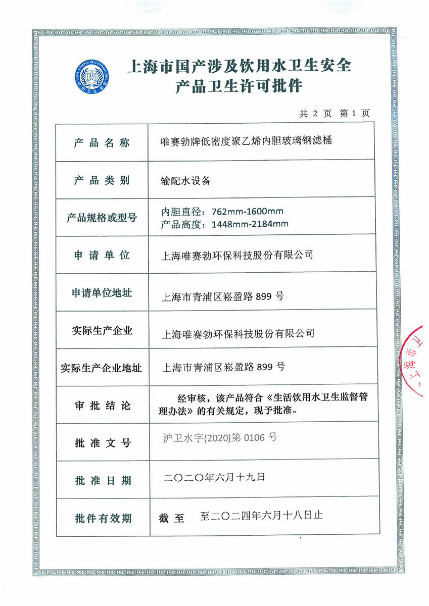 - 上海尊龙凯时人生就是搏z6com环保科技股份有限公司:从事设计和生产水处理设备及其配套零部件,主要产品为复合材料压力罐、膜元件压力容器、盐箱和软水箱。